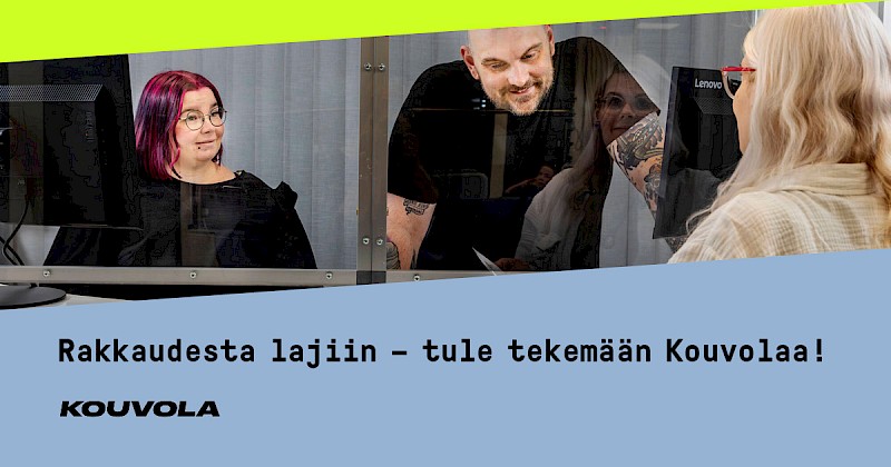 Tarjoamme kilpailukykyiset palvelussuhteen ehdot, hyvät henkilöstöedut (mm. Epassi) sekä mielekkään työympäristön. Meillä on osittainen mahdollisuus etätyöhön, mikä helpottaa työn ja perhe-elämän yhteensovittamista. Henkilöstön työhyvinvointia ja osaamista kehitetään suunnitelmallisesti. Kouvolan kaupungin asukkaille tuottaa palveluja noin 2 700 työntekijää. Tärkein tavoitteemme työssämme on halu toimia kaupunkilaisten parhaaksi. Henkilöstövisiomme on: Rakkaudesta lajiin - me teemme Kouvolaa!