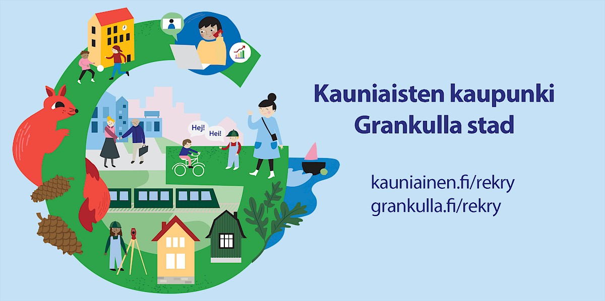 Är du vår nya kollega? Kom och jobba till Grankulla stad. Välkommen!
